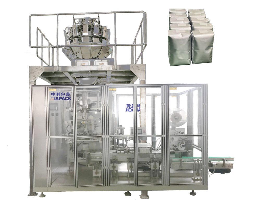 Seluruh lini termasuk satu set tas vffs yang membentuk mesin penyegel pengisi satu set mesin pengemas tas stiker atas, satu set pemeriksa berat dan mesin konveyor penyangga dan satu set mesin pembungkus film menyusut. Seluruh mesin dapat secara otomatis menyelesaikan penimbangan biji-bijian, stiker penyegel pembentuk tas dan warpping. Ada fungsi opsional tambahan untuk vakum tas yang dapat ditambahkan pada mesin unit ini.