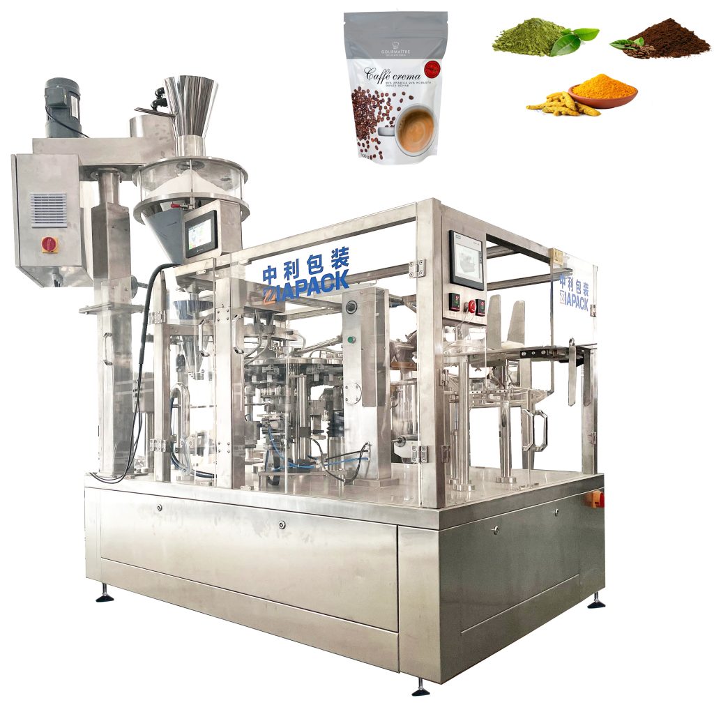 Mesin pengemas yang diberi tas putar dengan dosis yang berbeda (Seperti penimbangan multihead, auger filler, liquid filler dll.), Dapat cocok untuk pengemasan otomatis untuk granular, bubuk, cairan, pasta dll. begitu seterusnya.