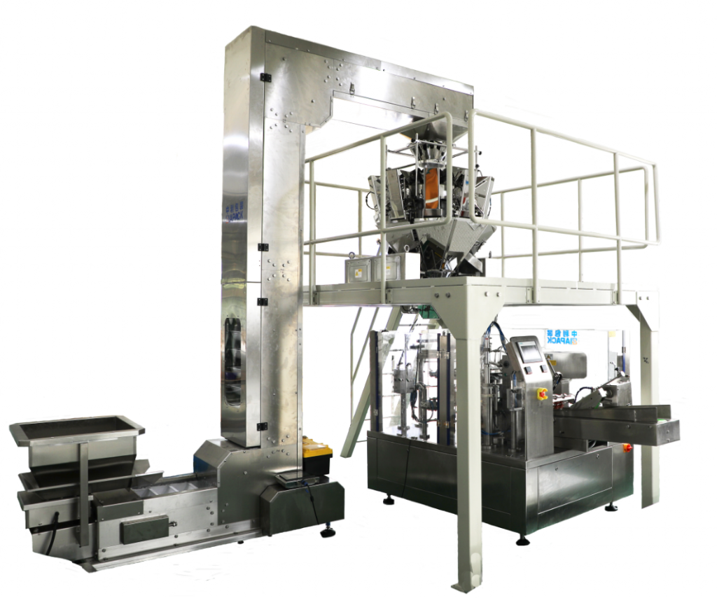 3. Horizontal Infeed conveyor cocok untuk tas dengan ritsleting, maks. masukkan 300pcs setiap kali.