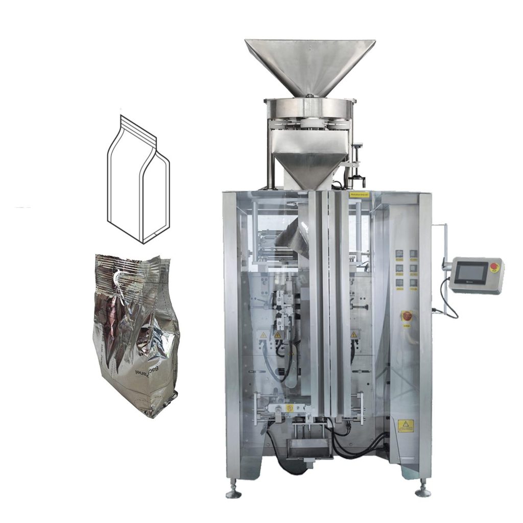 Penimbangan multihead otomatis dan kemasan vertikal digabungkan dalam satu unit (teknologi 2 in 1), kontrol oleh PLC