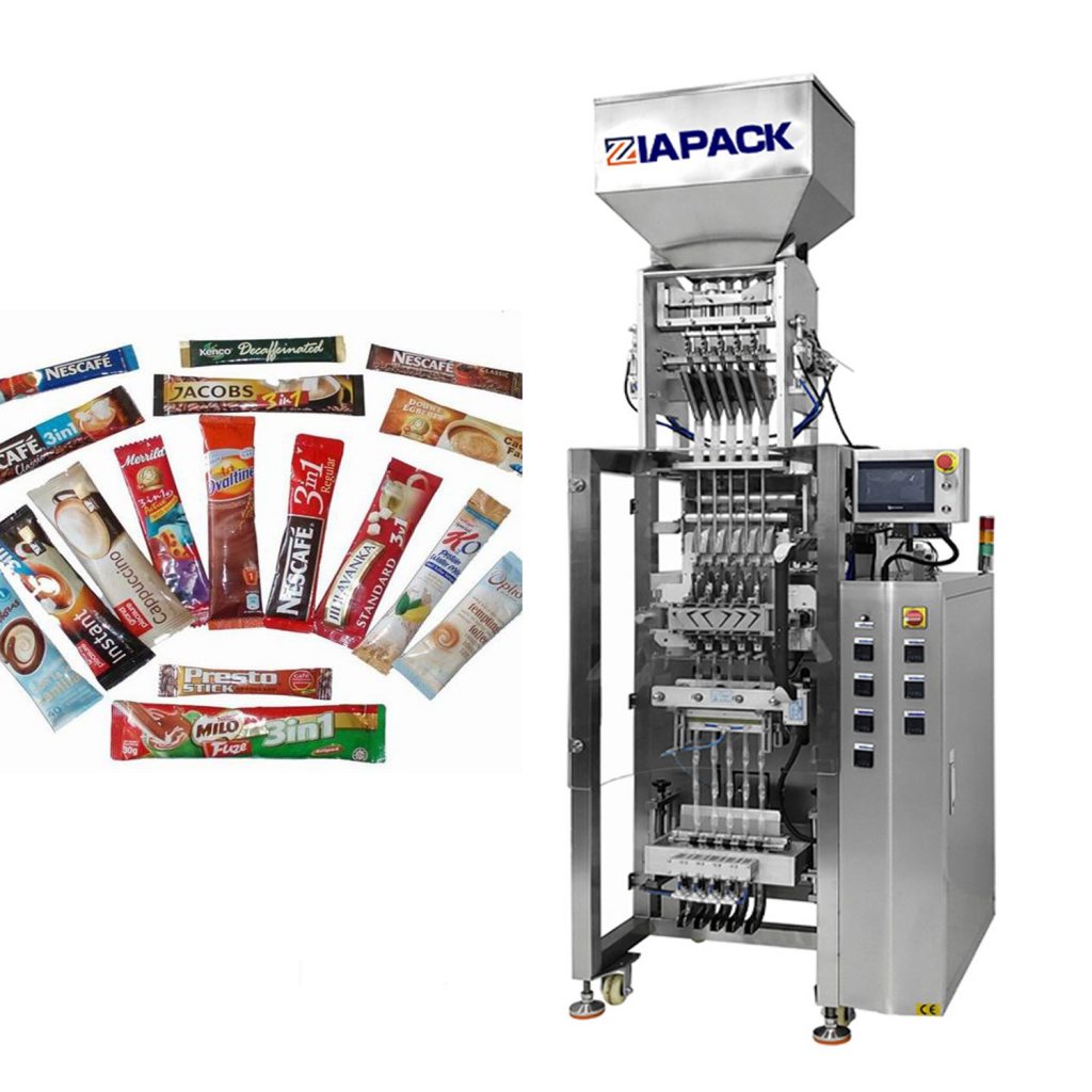 Ini adalah paket tongkat multijalur mesin pengemas saset, berlaku untuk mengemas bahan bubuk seperti susu bubuk, bubuk jus, bubuk kopi, bubuk cokelat, bubuk biji-bijian, bubuk teh hijau, bubuk obat, bubuk sehat dll di industri farmasi, bahan kimia makanan dan pertanian.