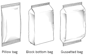 | Gaya tas | tas bantal; Gusseted atau block bottom bag (Option) |